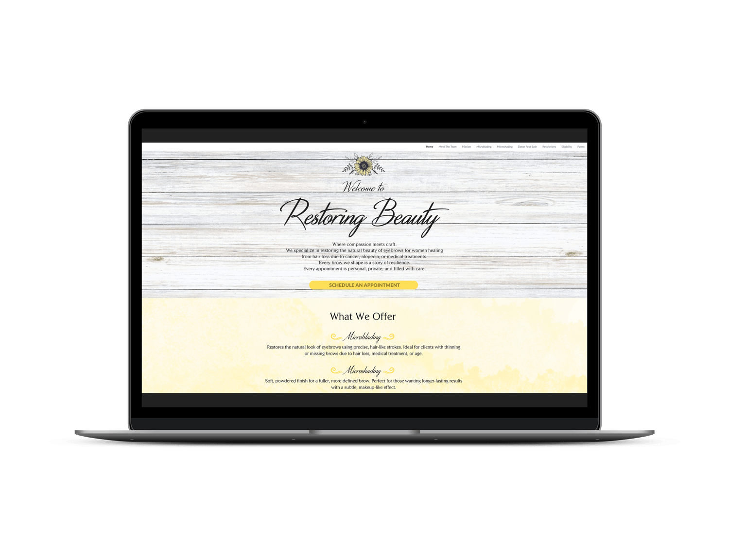 Elegant single-page site for a local beauty studio. Subtle sparkle meets calm clarity - built in Canva for easy DIY updates without sacrificing polish.