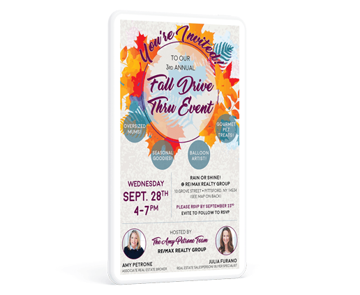 Bright, seasonal event flyer for a drive-thru fall celebration. Family-friendly, info-packed, and styled with autumnal charm.