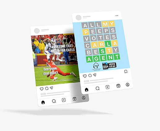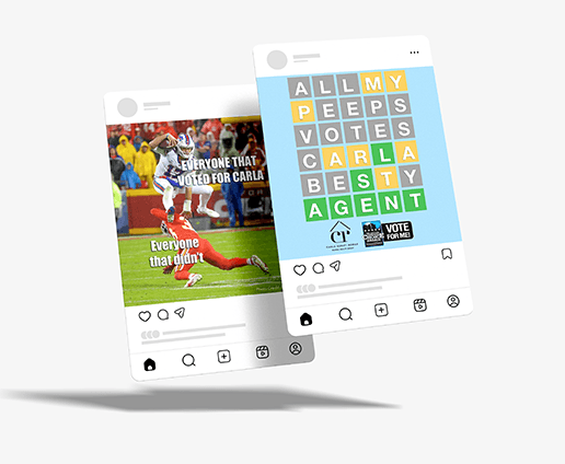 Scroll-stopping, pet-powered campaign for a real estate brokerage. These custom posts helped boost visibility and community engagement during voting period.