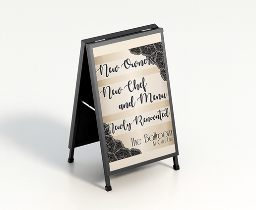 Sidewalk signage for a local restaurant relaunch - elegant type treatment with just the right touch of flair to grab attention.