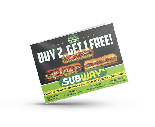 Bold postcard ad driving in-store traffic across multiple locations. Bright visuals and clear offers designed for maximum ROI.
