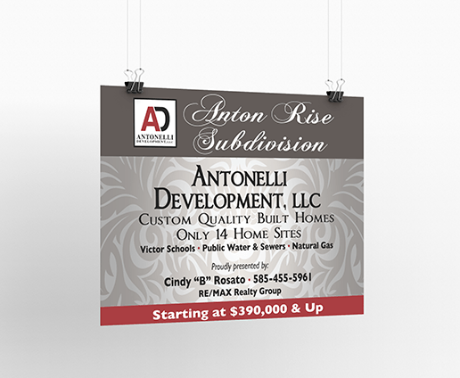 Oversized signage for a luxury home development designed to feel premium, polished, and perfectly legible from the roadside.